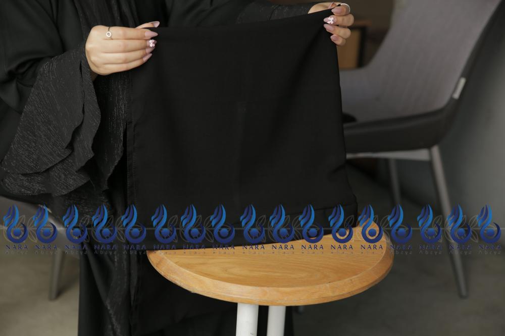 أضيفي لمسة من الفخامة إلى مظهرك مع طرحة كريب من عبايات نارا ، حيث أنها تتميز بلون أسود كلاسيكي يناسب جميع المناسبات،و يضيف طرف من قماش الكريب الراقي لمسة أنيقة وعصرية كما أن تصميمها العملي وخامتها الناعمة يجعلها اختيارًا مثاليًا للإطلالات اليومية والرسمية.
